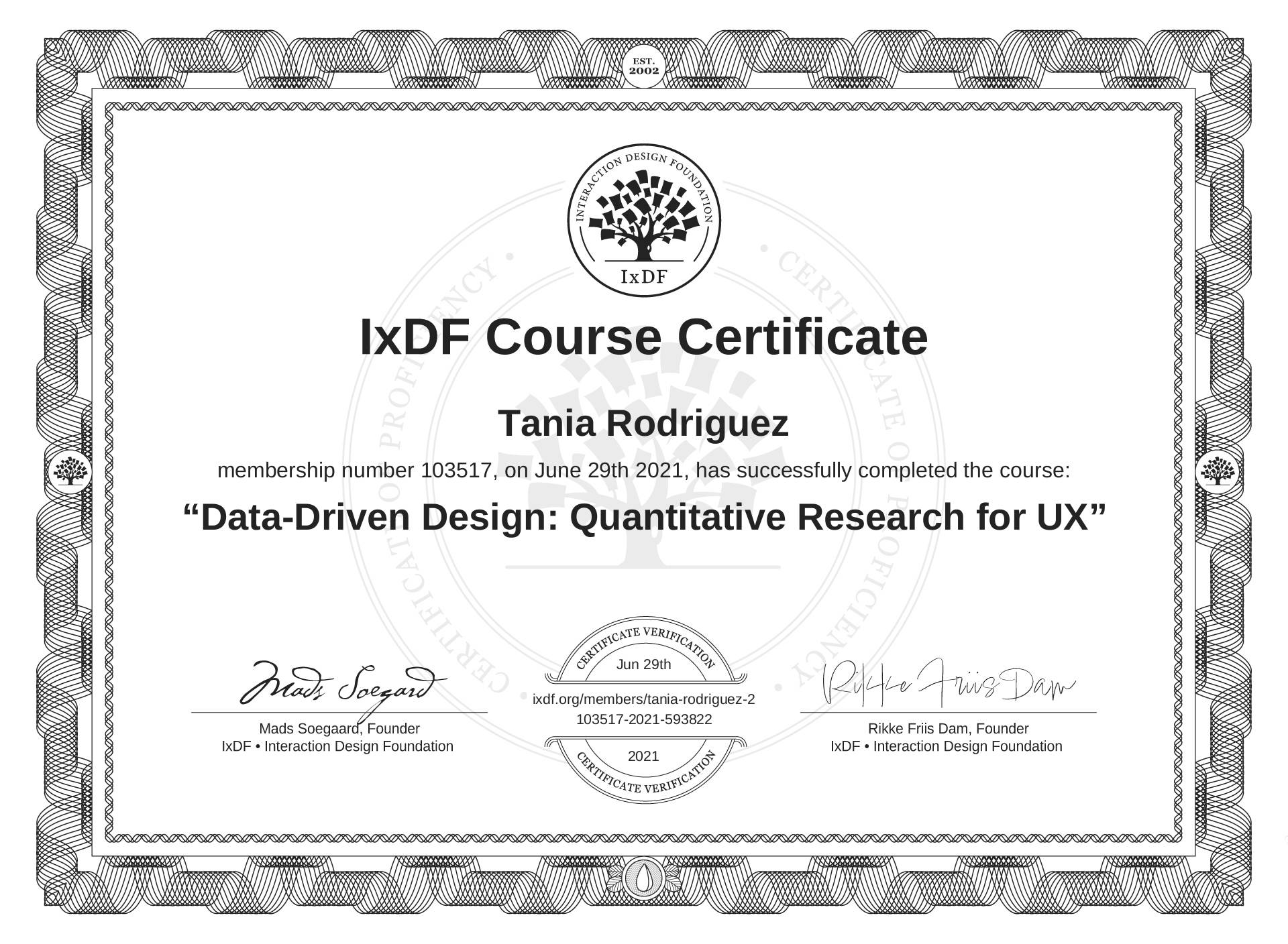 Tania Rodríguez's IxDF Course Certificate: Data-Driven Design: Quantitative Research for UX