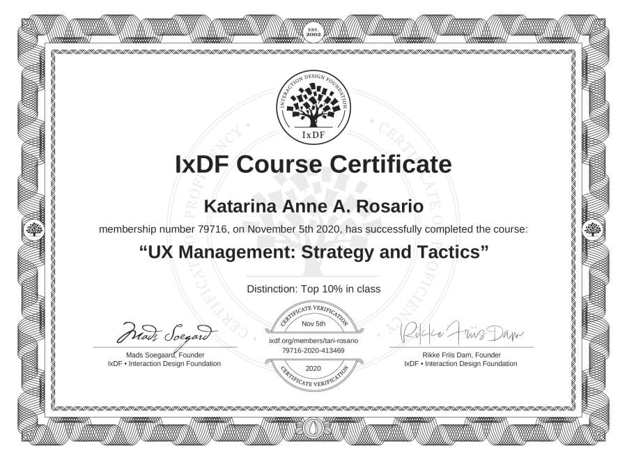 Katarina Anne A. Rosario's IxDF Course Certificate: UX Management: Strategy and Tactics