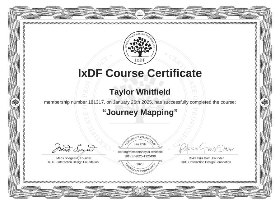 Taylor Whitfield's IxDF Course Certificate: Journey Mapping