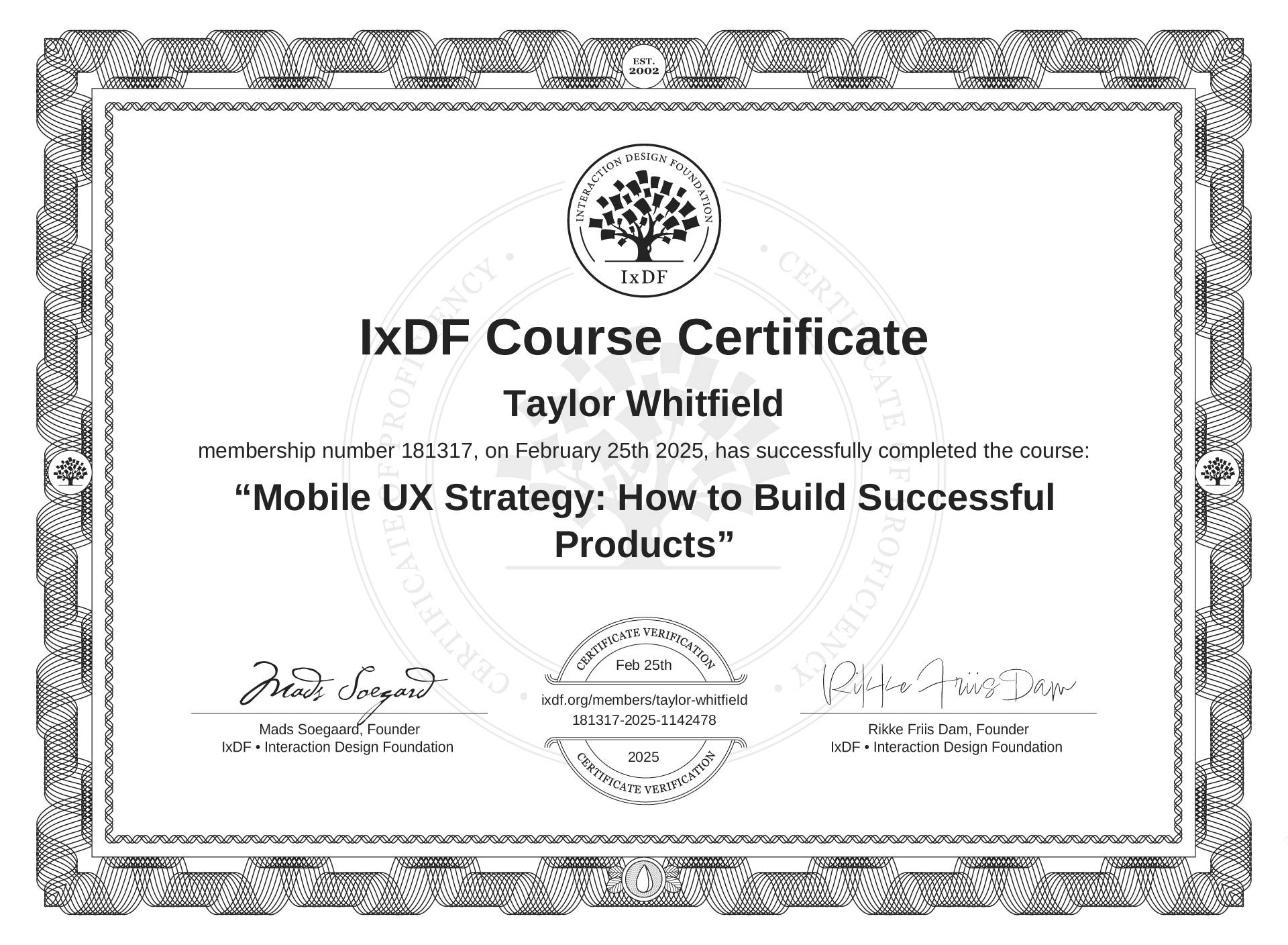 Taylor Whitfield's IxDF Course Certificate: Mobile UX Strategy: How to Build Successful Products