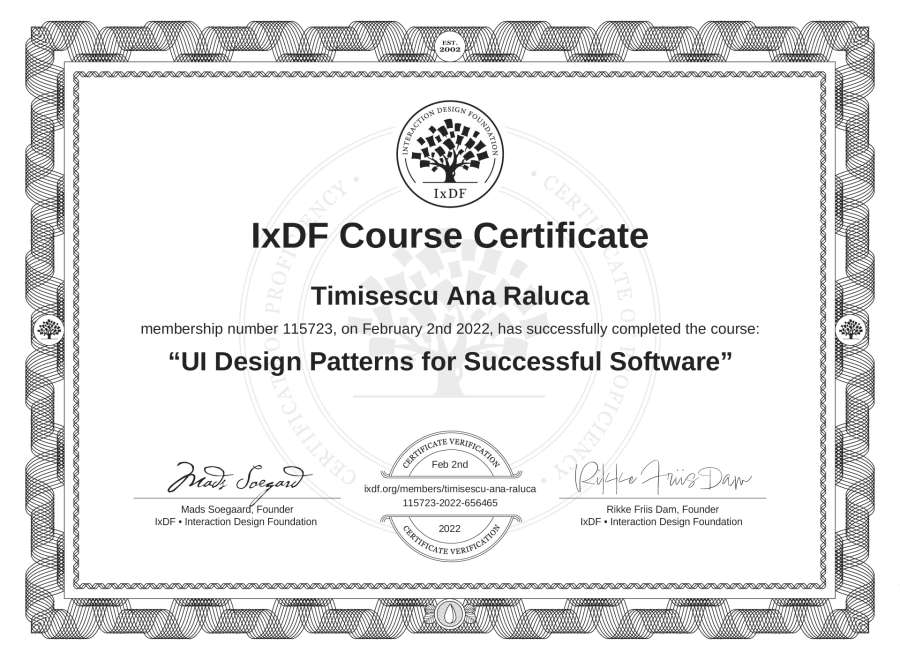 Timisescu Ana Raluca's IxDF Course Certificate: UI Design Patterns for Successful Software