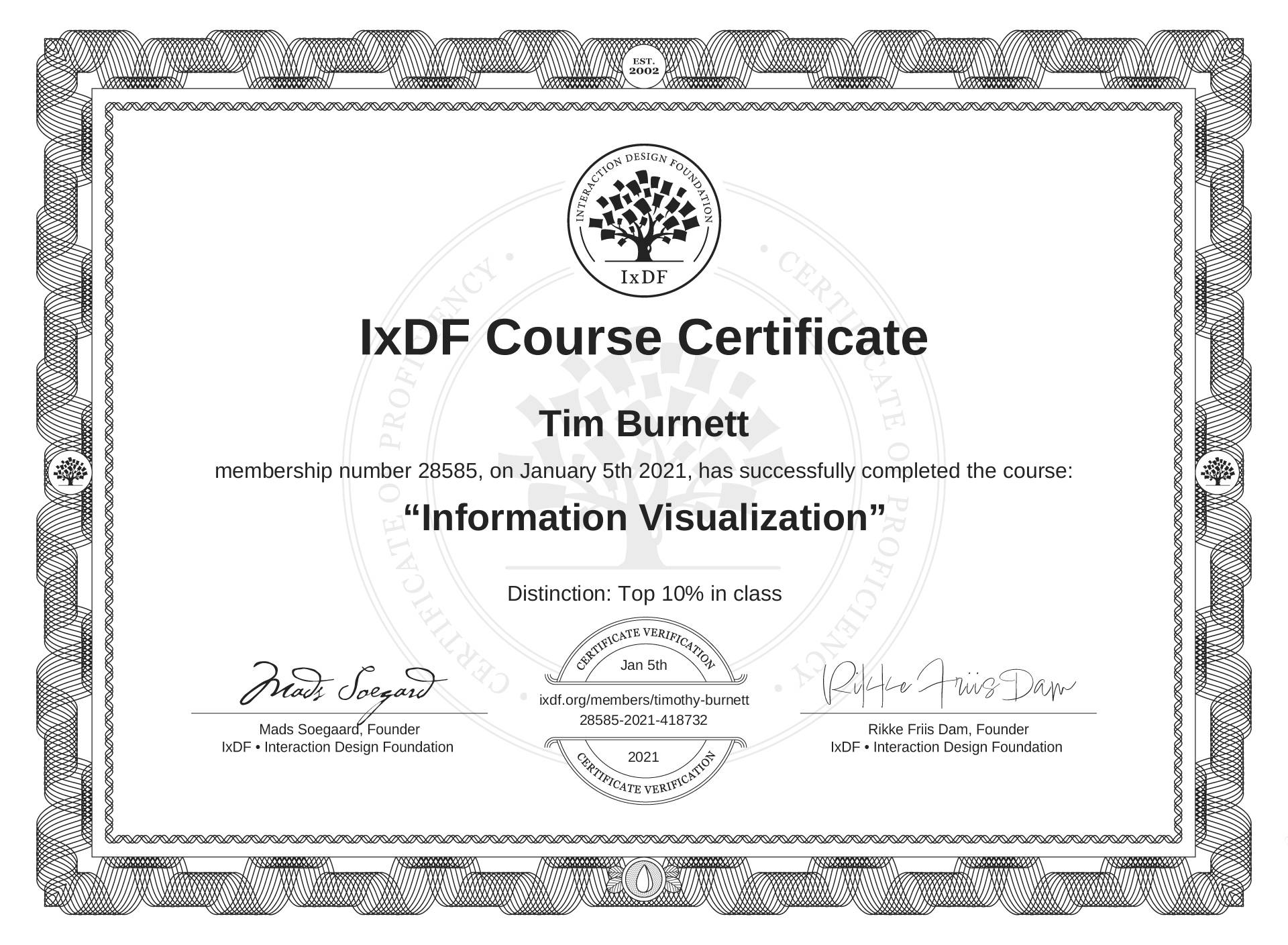 Tim Burnett's IxDF Course Certificate: Information Visualization