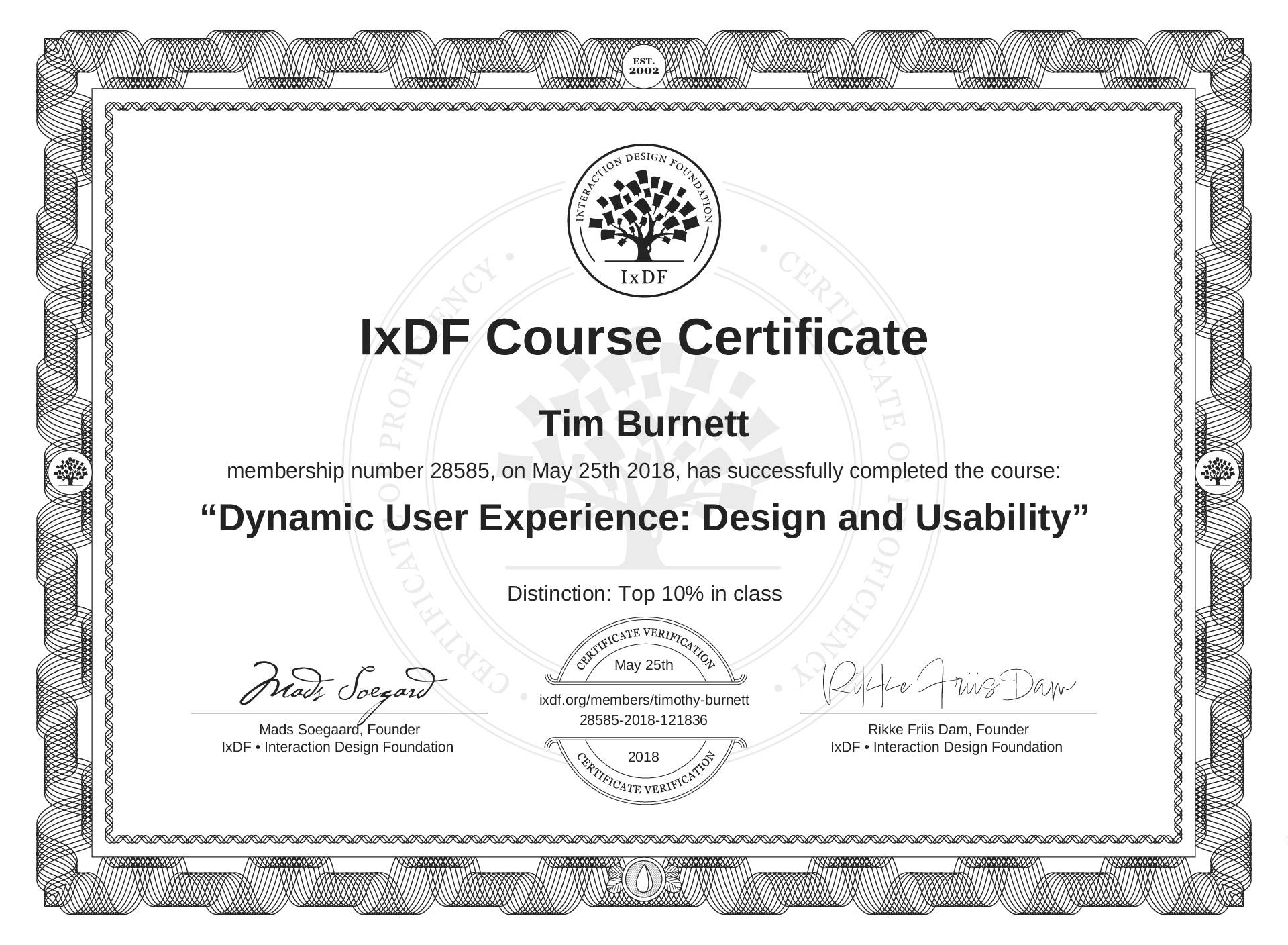 Tim Burnett's IxDF Course Certificate: Dynamic User Experience: Design and Usability