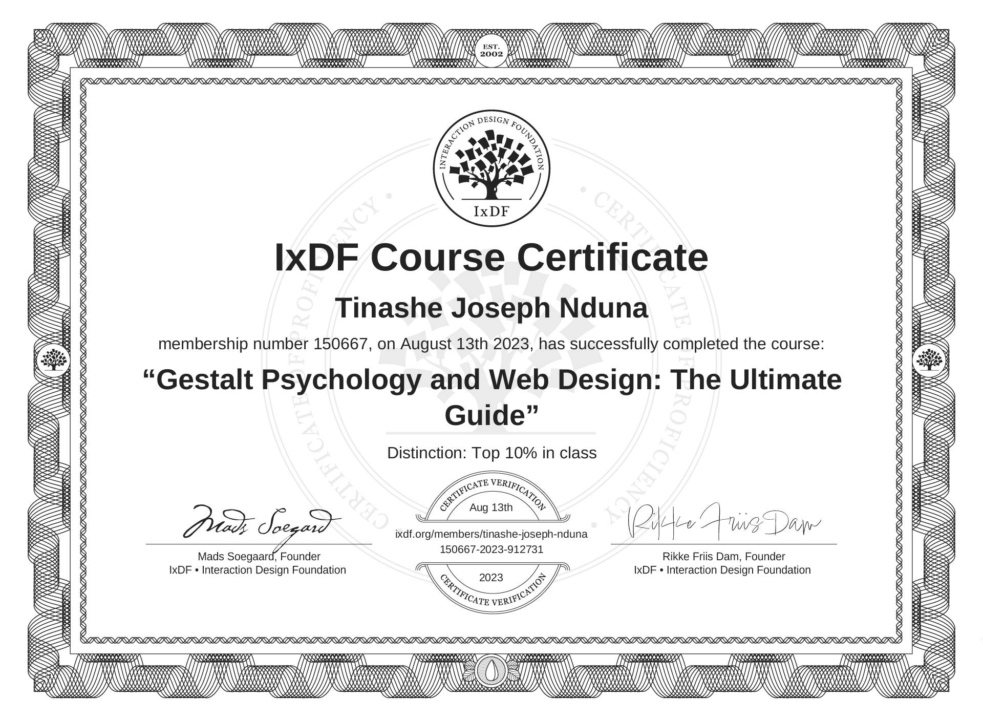 Tinashe Joseph Nduna's IxDF Course Certificate: Gestalt Psychology and Web Design: The Ultimate Guide