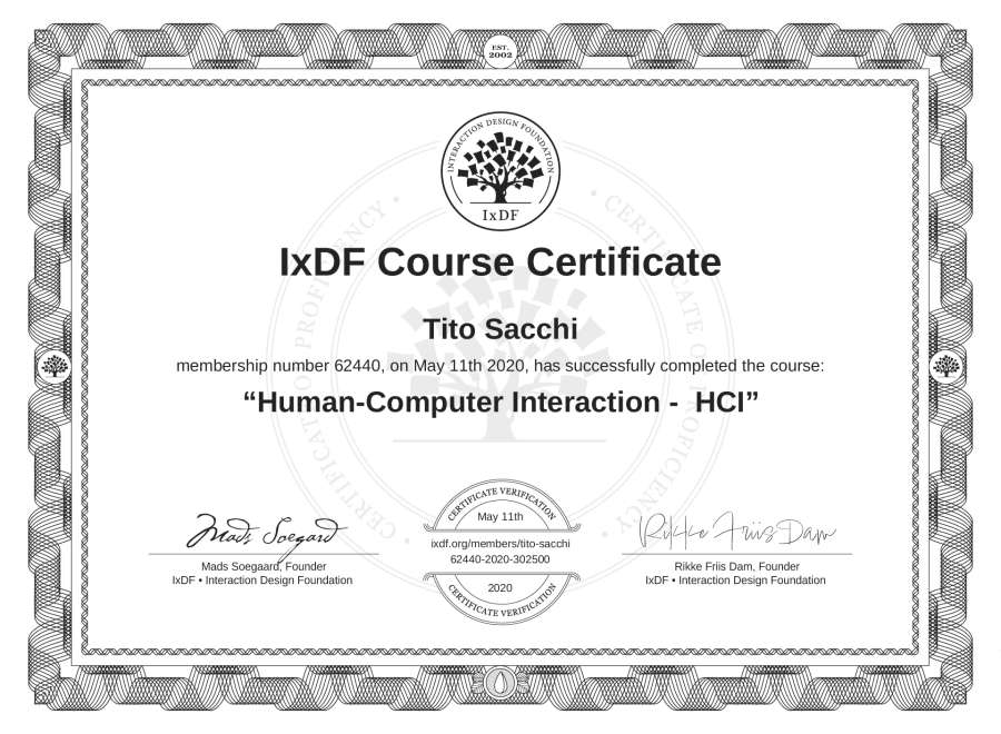 Tito Sacchi's IxDF Course Certificate: Human-Computer Interaction - HCI