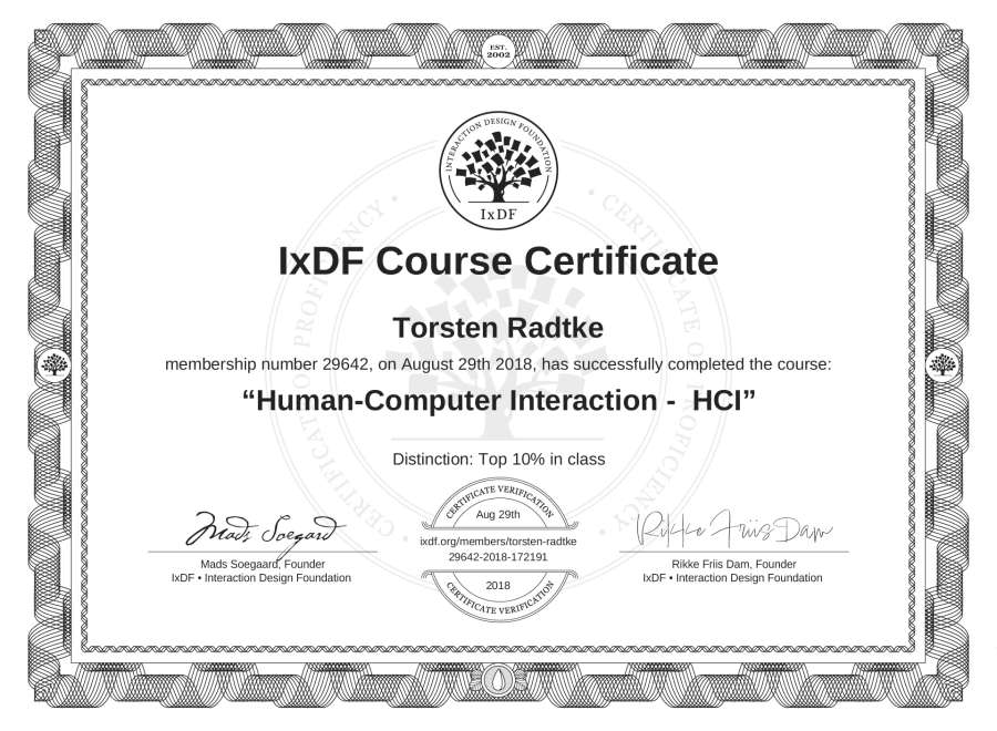 Torsten Radtke's IxDF Course Certificate: Human-Computer Interaction - HCI