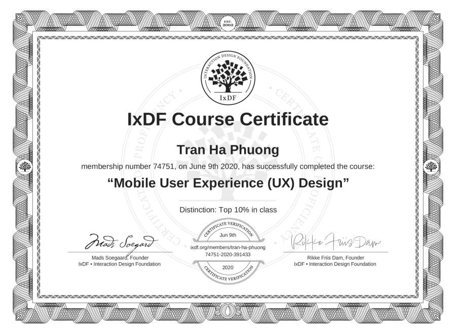 Tran Ha Phuong's IxDF Course Certificate: Mobile User Experience (UX) Design