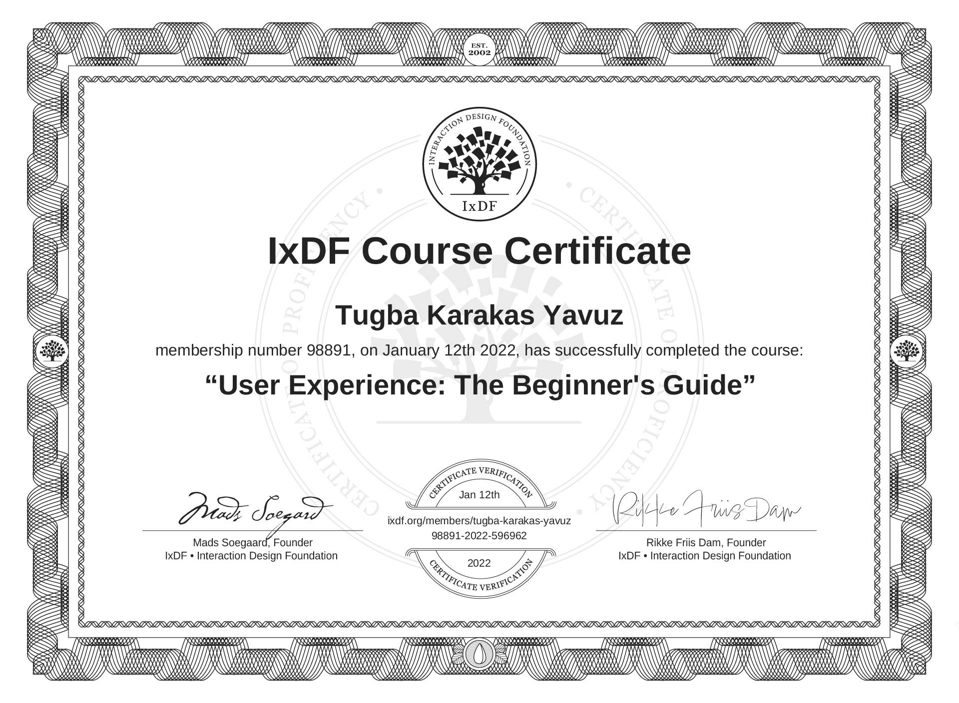 Tugba Karakas Yavuz's IxDF Course Certificate: User Experience: The Beginner's Guide