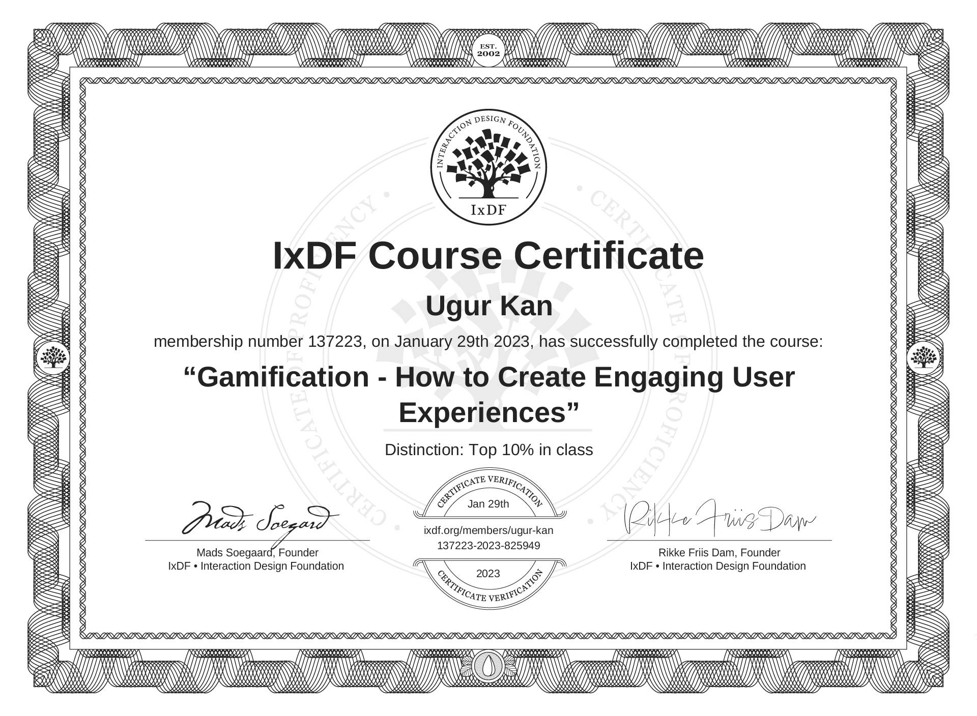 Uğur Kan's IxDF Course Certificate: Gamification - How to Create Engaging User Experiences