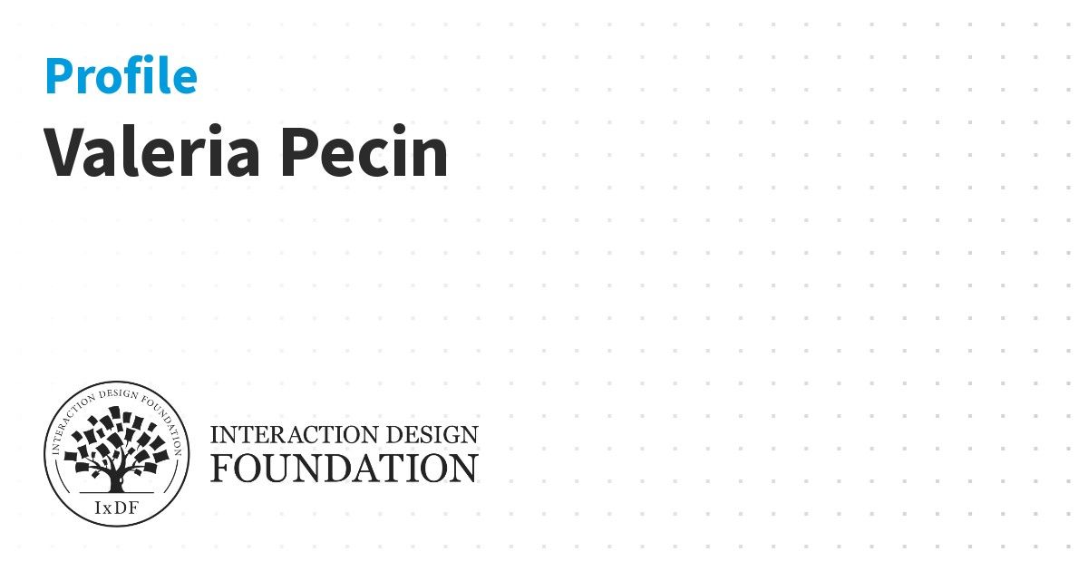 IxDF Course Certificates are awarded to Valeria Pecin in formal recognition of their coursework surpassing the rigorous benchmarks of exceptional performance established by the IxDF Educational Codex.