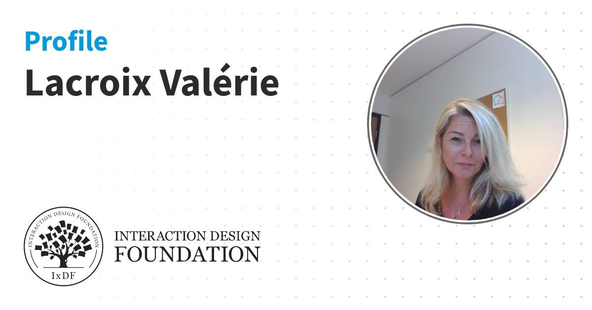IxDF Course Certificates are awarded to Lacroix Valérie in formal recognition of their coursework surpassing the rigorous benchmarks of exceptional performance established by the IxDF Educational Codex.