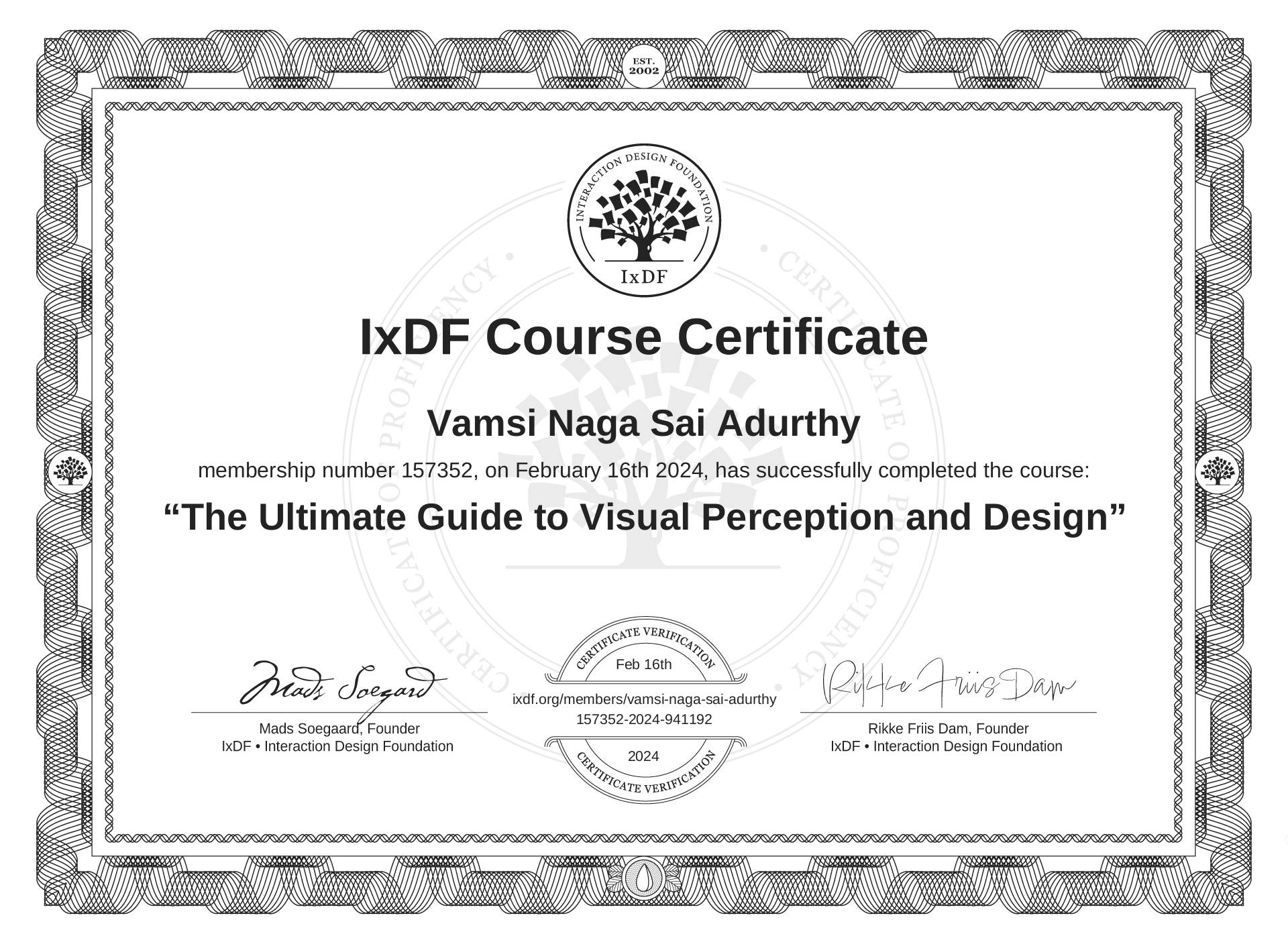 Vamsi Naga Sai Adurthy's IxDF Course Certificate: The Ultimate Guide to Visual Perception and Design