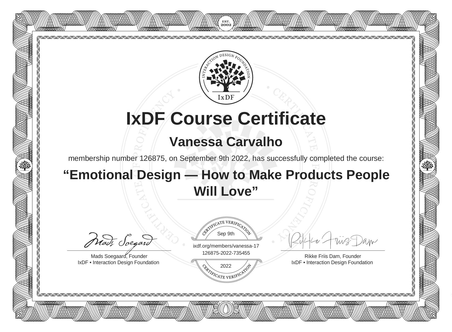 Vanessa Carvalho's IxDF Course Certificate: Emotional Design — How to Make Products People Will Love