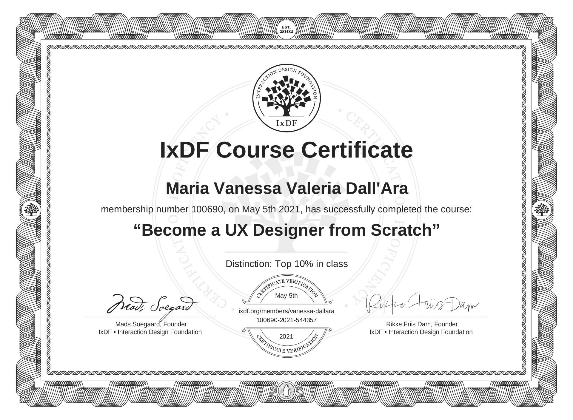 María Vanessa Valeria Dall'Ara's IxDF Course Certificate: Become a UX Designer from Scratch