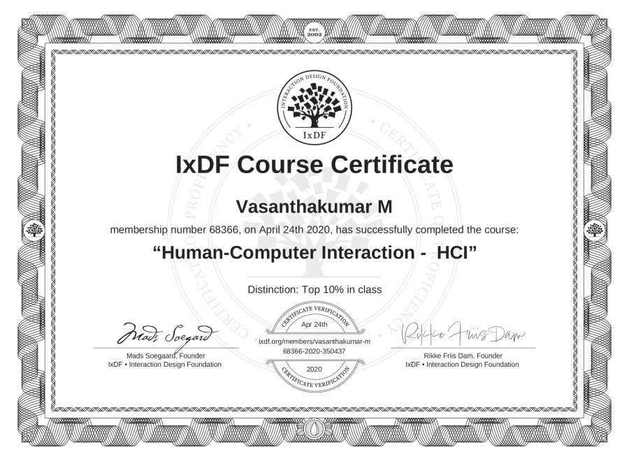 Vasanthakumar M's IxDF Course Certificate: Human-Computer Interaction - HCI