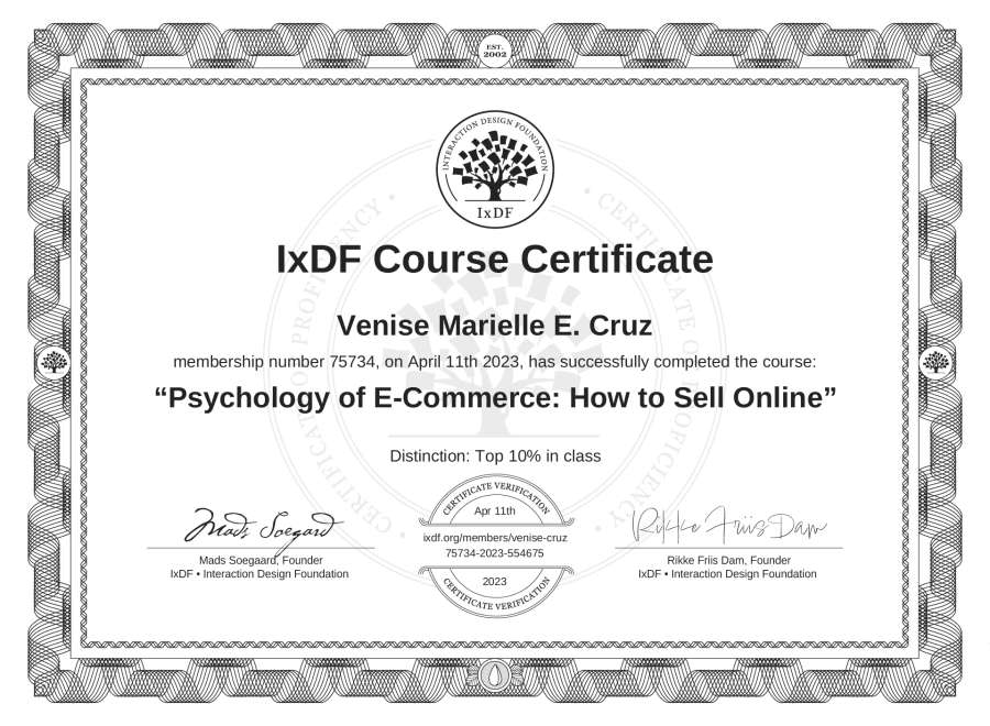 Venise Marielle E. Cruz's IxDF Course Certificate: Psychology of E-Commerce: How to Sell Online