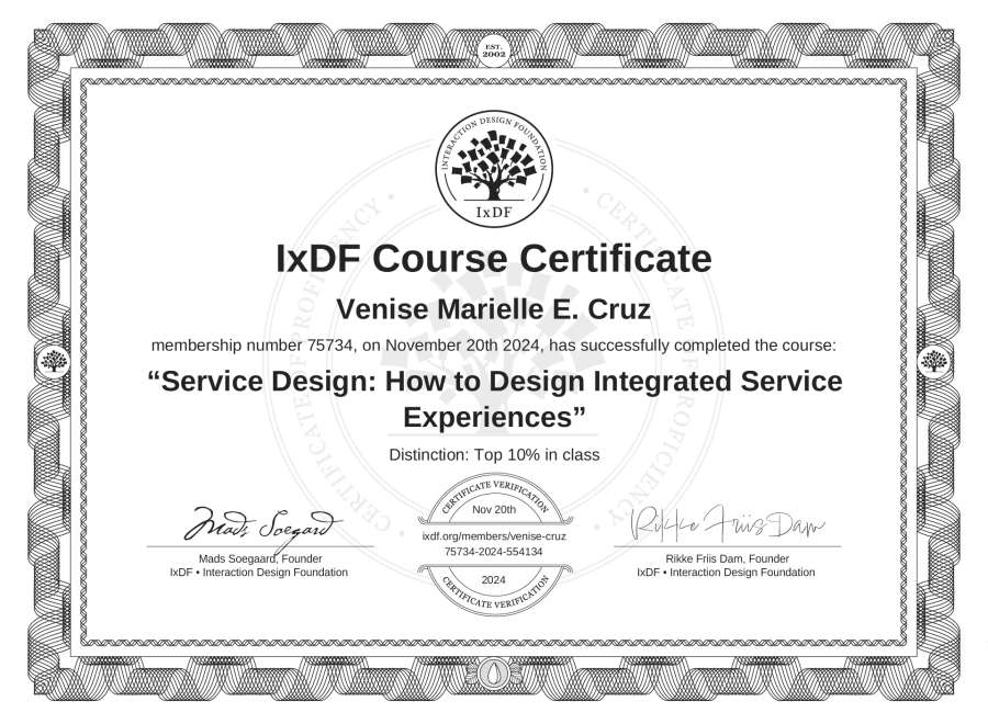 Venise Marielle E. Cruz's IxDF Course Certificate: Service Design: How to Design Integrated Service Experiences