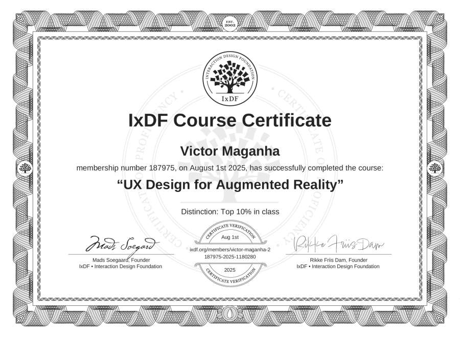 Victor Maganha's IxDF Course Certificate: UX Design for Augmented Reality