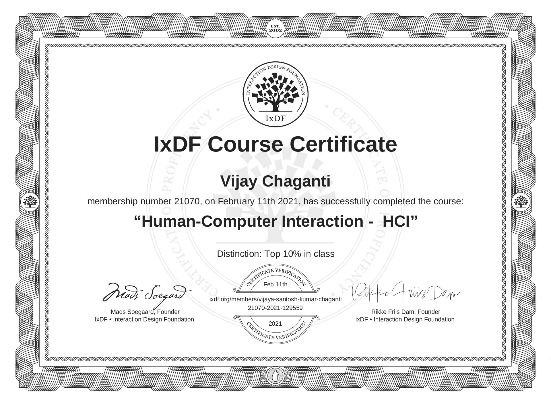 Vijay Chaganti's IxDF Course Certificate: Human-Computer Interaction - HCI