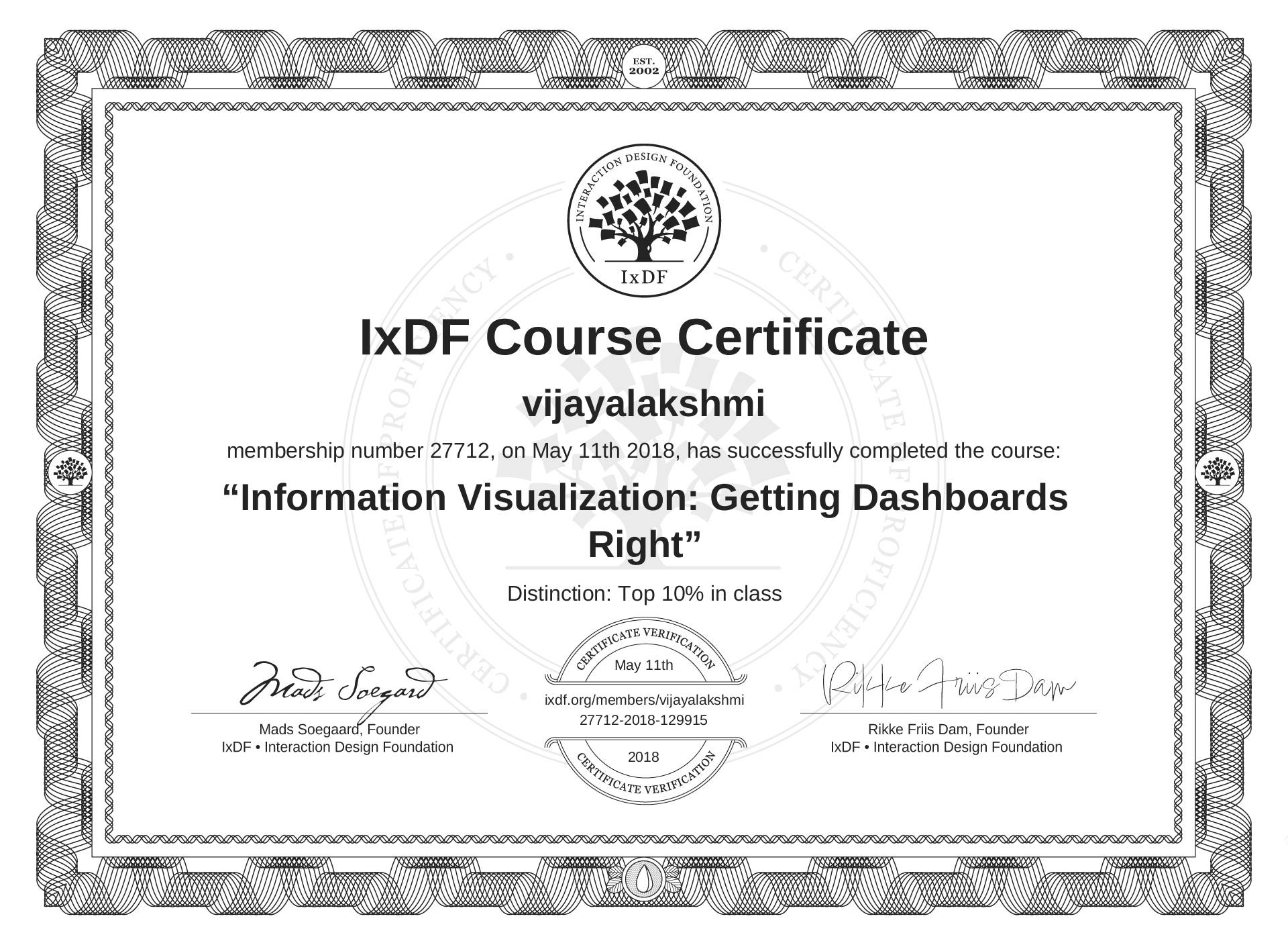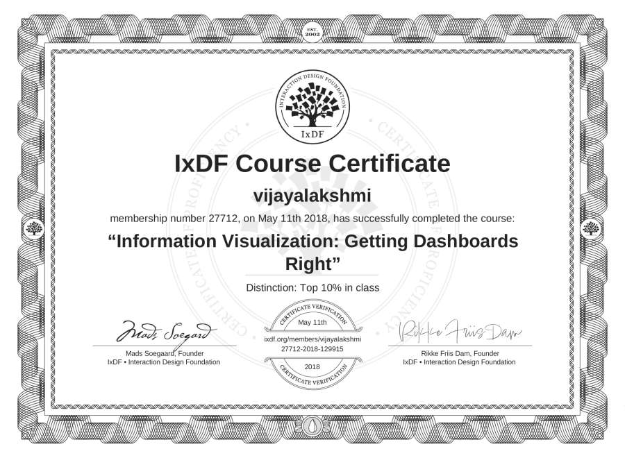 vijayalakshmi's IxDF Course Certificate: Information Visualization: Getting Dashboards Right
