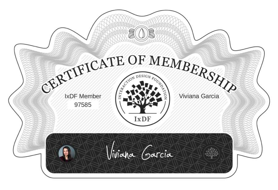 Viviana Garcia: IxDF Membership Certificate