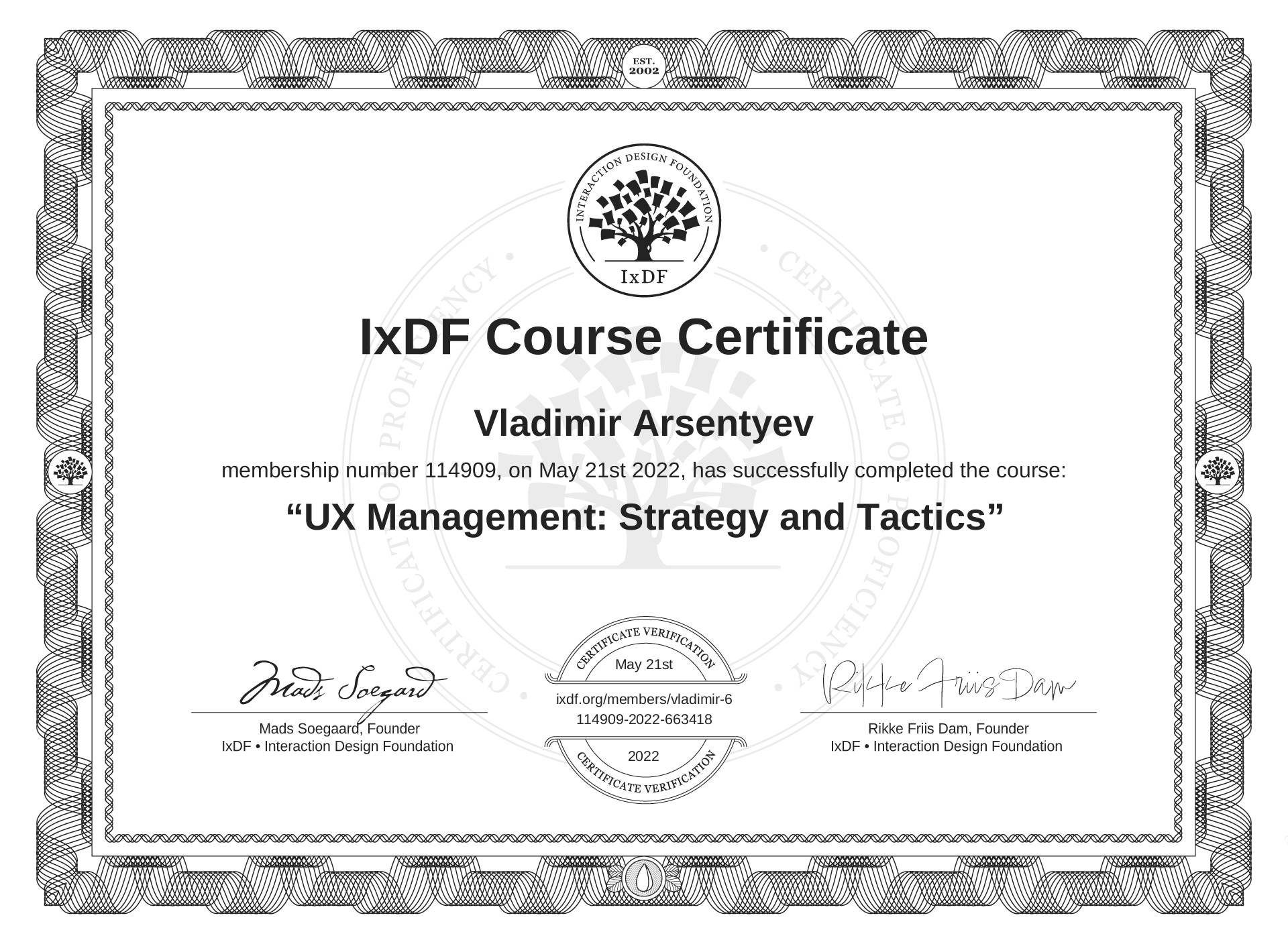 Vladimir Arsentyev's IxDF Course Certificate: UX Management: Strategy and Tactics