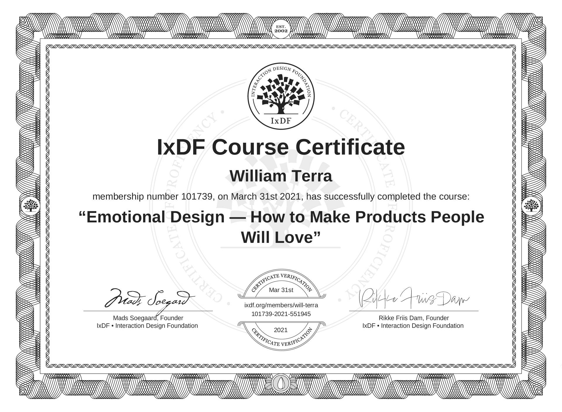 William Terra's IxDF Course Certificate: Emotional Design — How to Make Products People Will Love