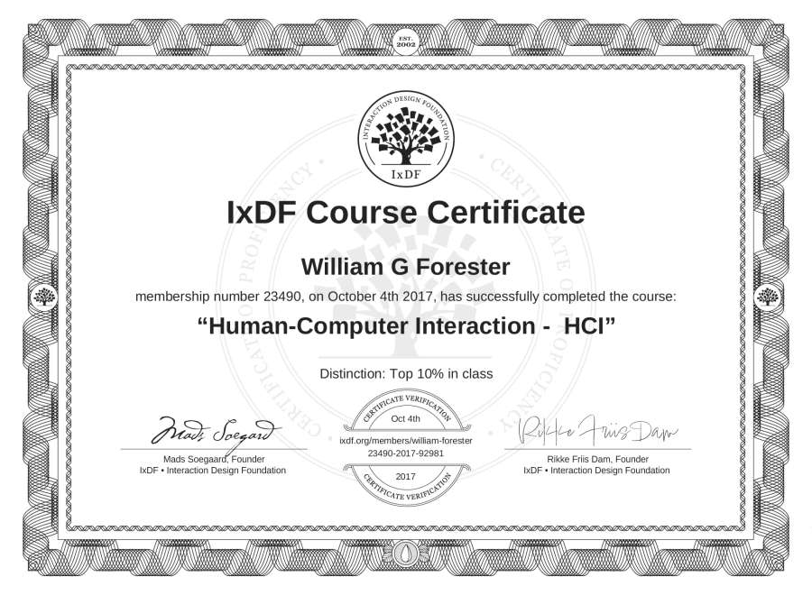 William G Forester's IxDF Course Certificate: Human-Computer Interaction - HCI