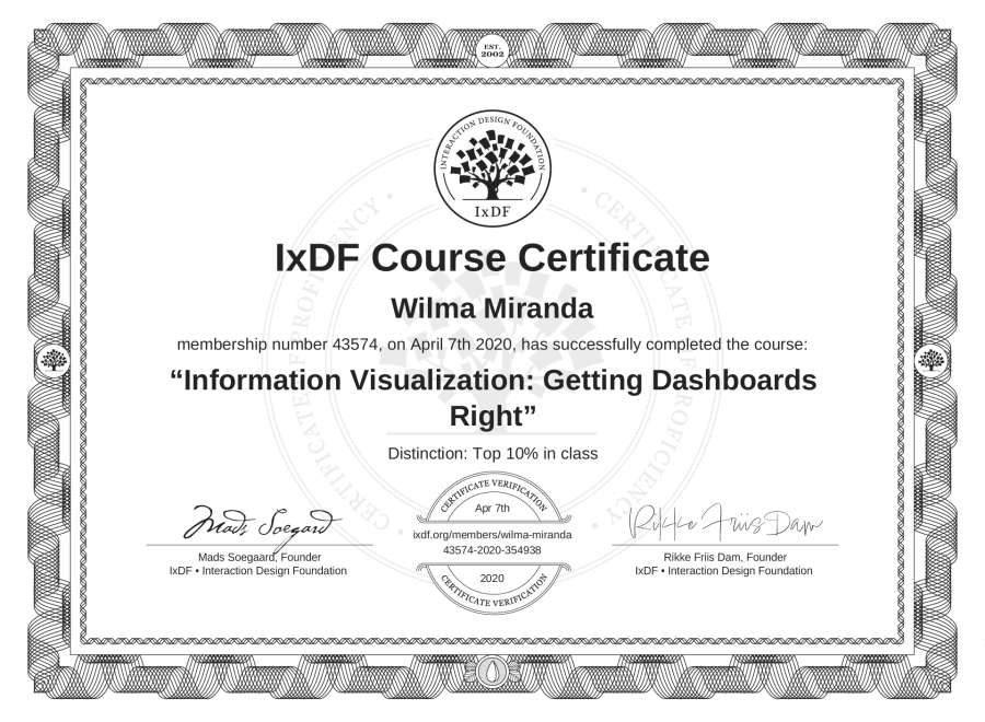 Wilma Miranda's IxDF Course Certificate: Information Visualization: Getting Dashboards Right