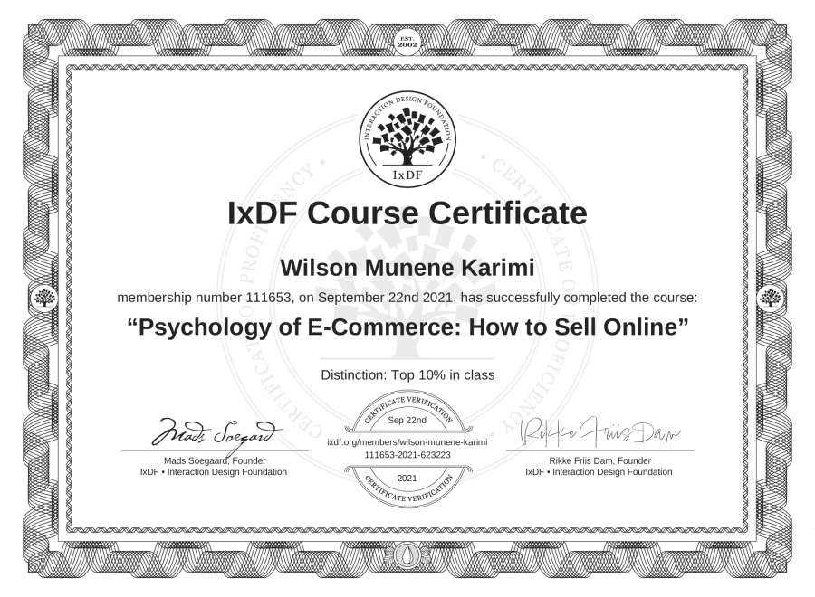 Wilson Munene Karimi's IxDF Course Certificate: Psychology of E-Commerce: How to Sell Online