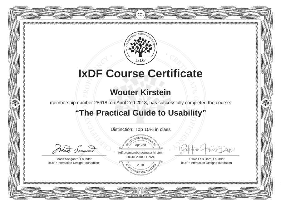 Wouter Kirstein's IxDF Course Certificate: The Practical Guide to Usability