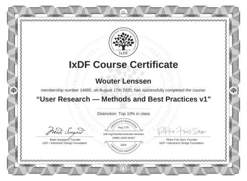 IxDF Course Certificates are awarded to Wouter Lenssen in formal recognition of their coursework surpassing the rigorous benchmarks of exceptional performance established by the IxDF Educational Codex.