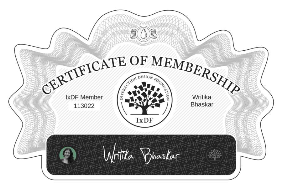 Page URL: https://www.interaction-design.org/members/writika-bhaskar/certificate/membership/mc_RG19Jj7c4