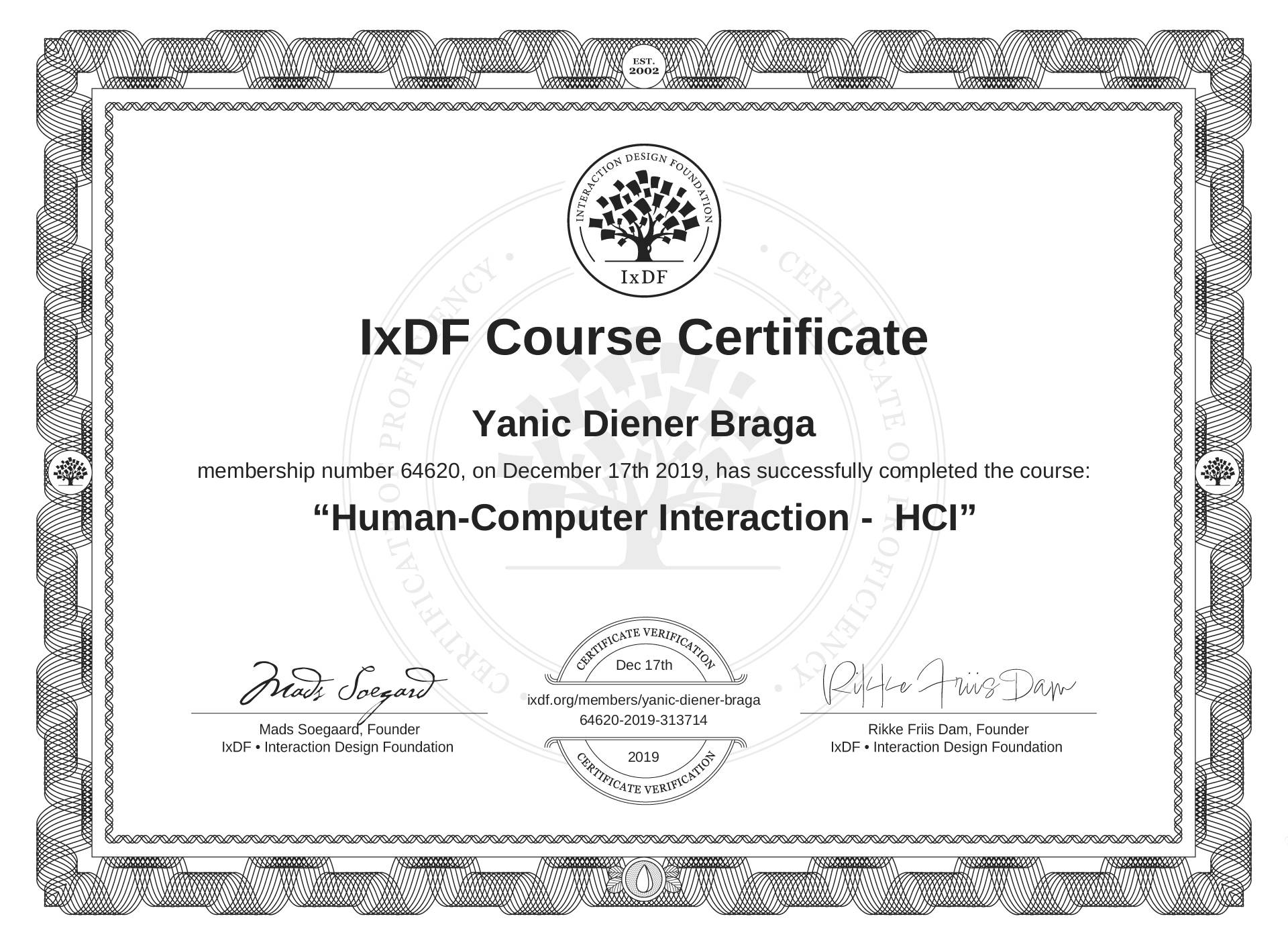Yanic Diener Braga's IxDF Course Certificate: Human-Computer Interaction - HCI