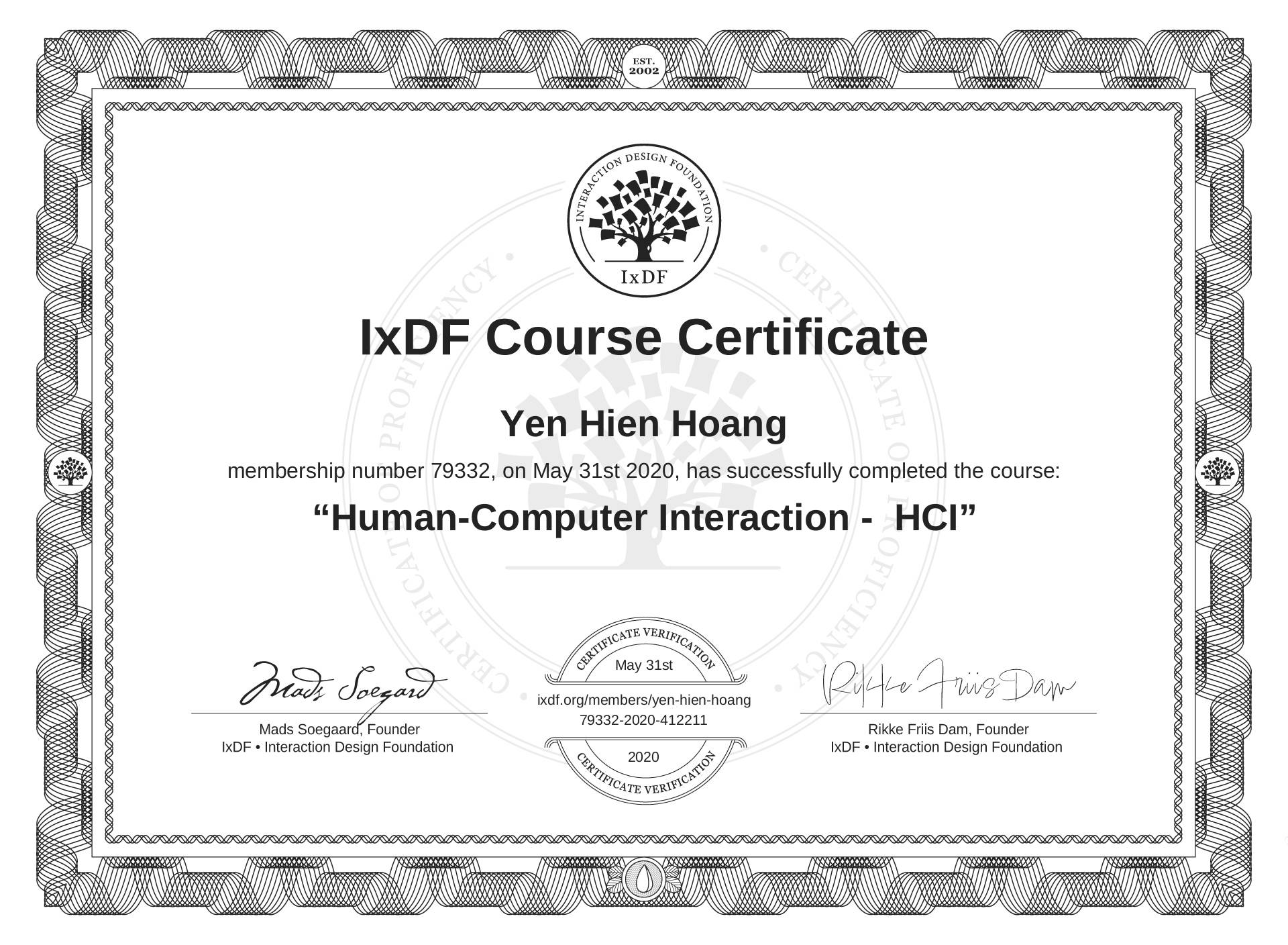 Yen Hien Hoang's IxDF Course Certificate: Human-Computer Interaction - HCI