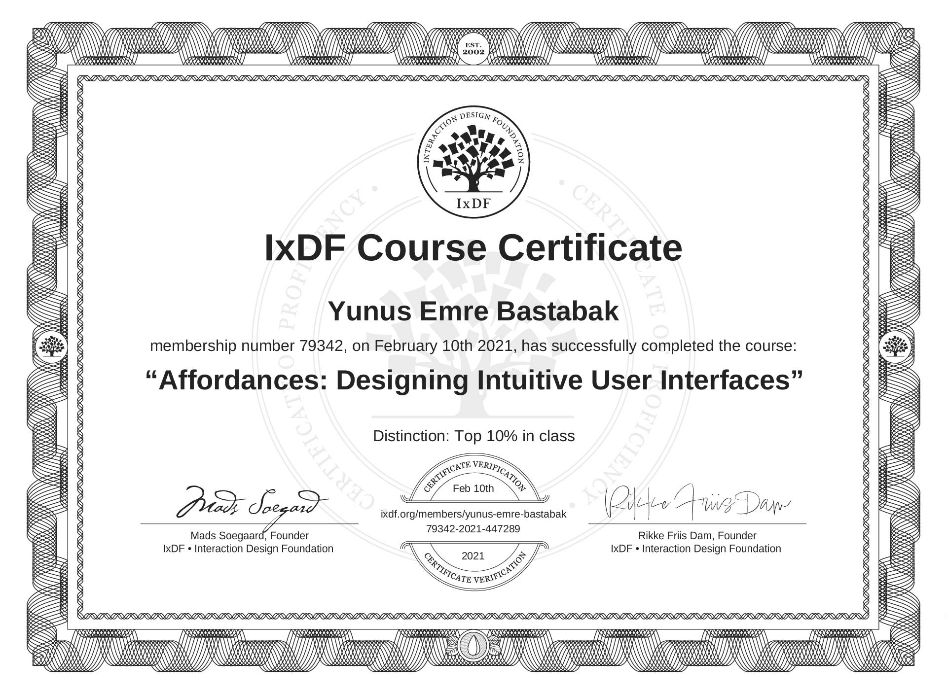 Yunus Emre Baştabak's IxDF Course Certificate: Affordances: Designing Intuitive User Interfaces