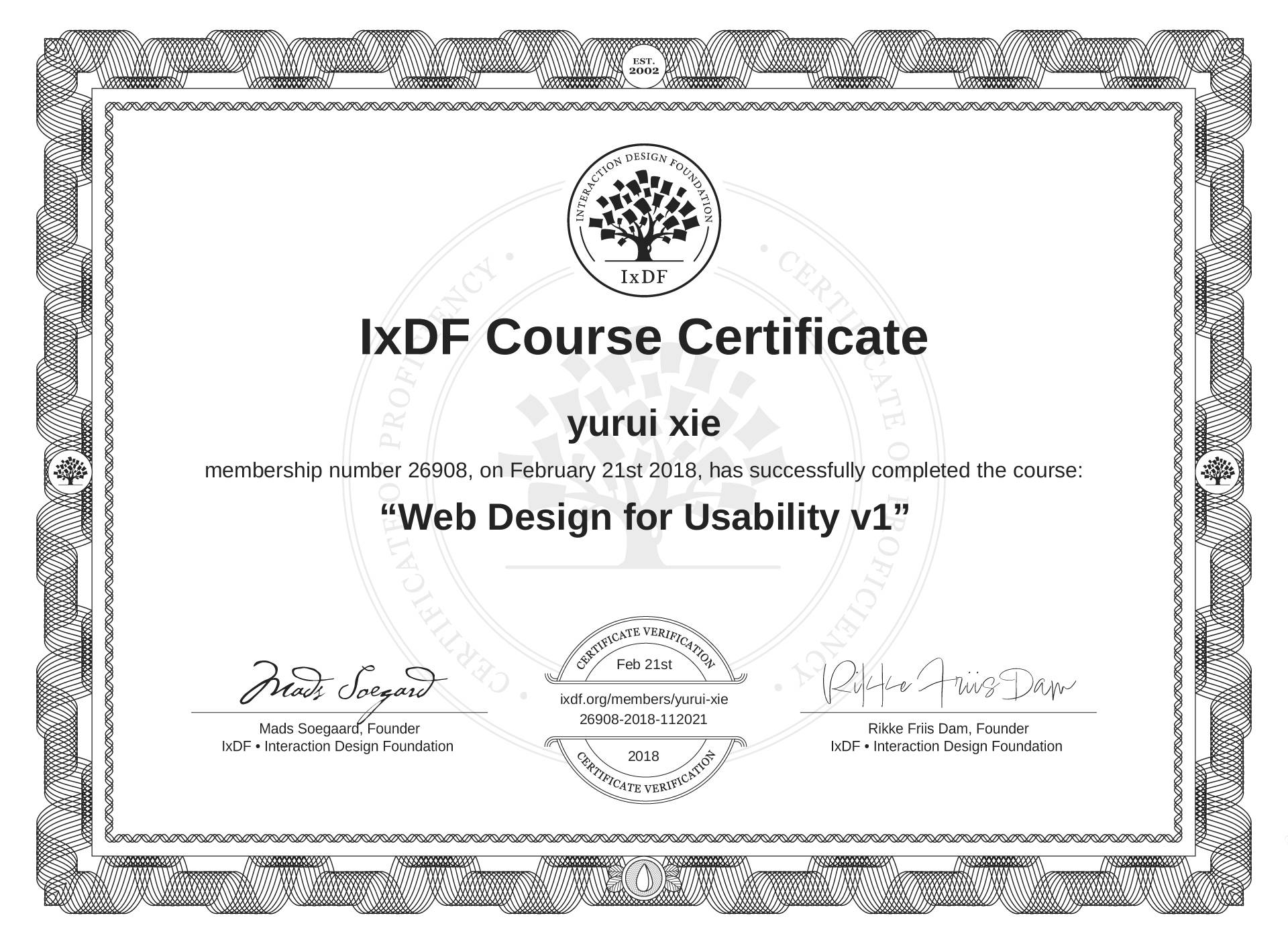 yurui xie's IxDF Course Certificate: Web Design for Usability v1