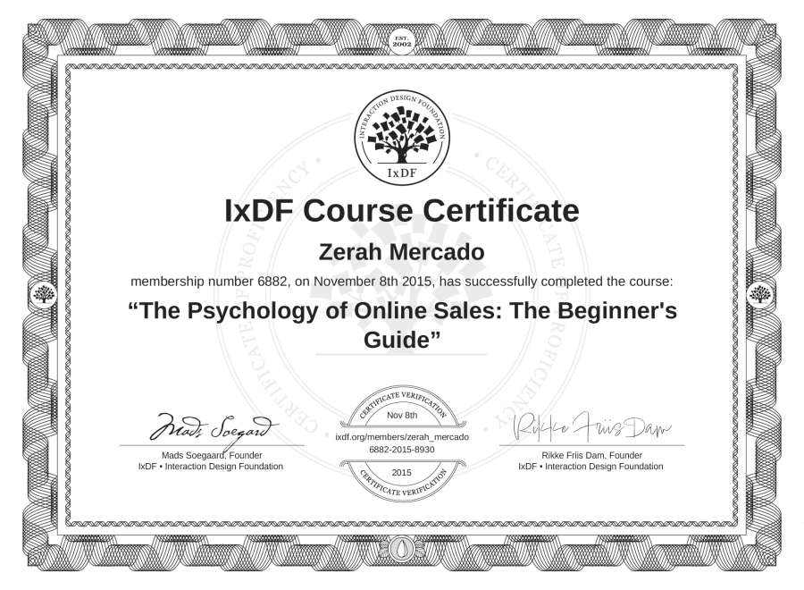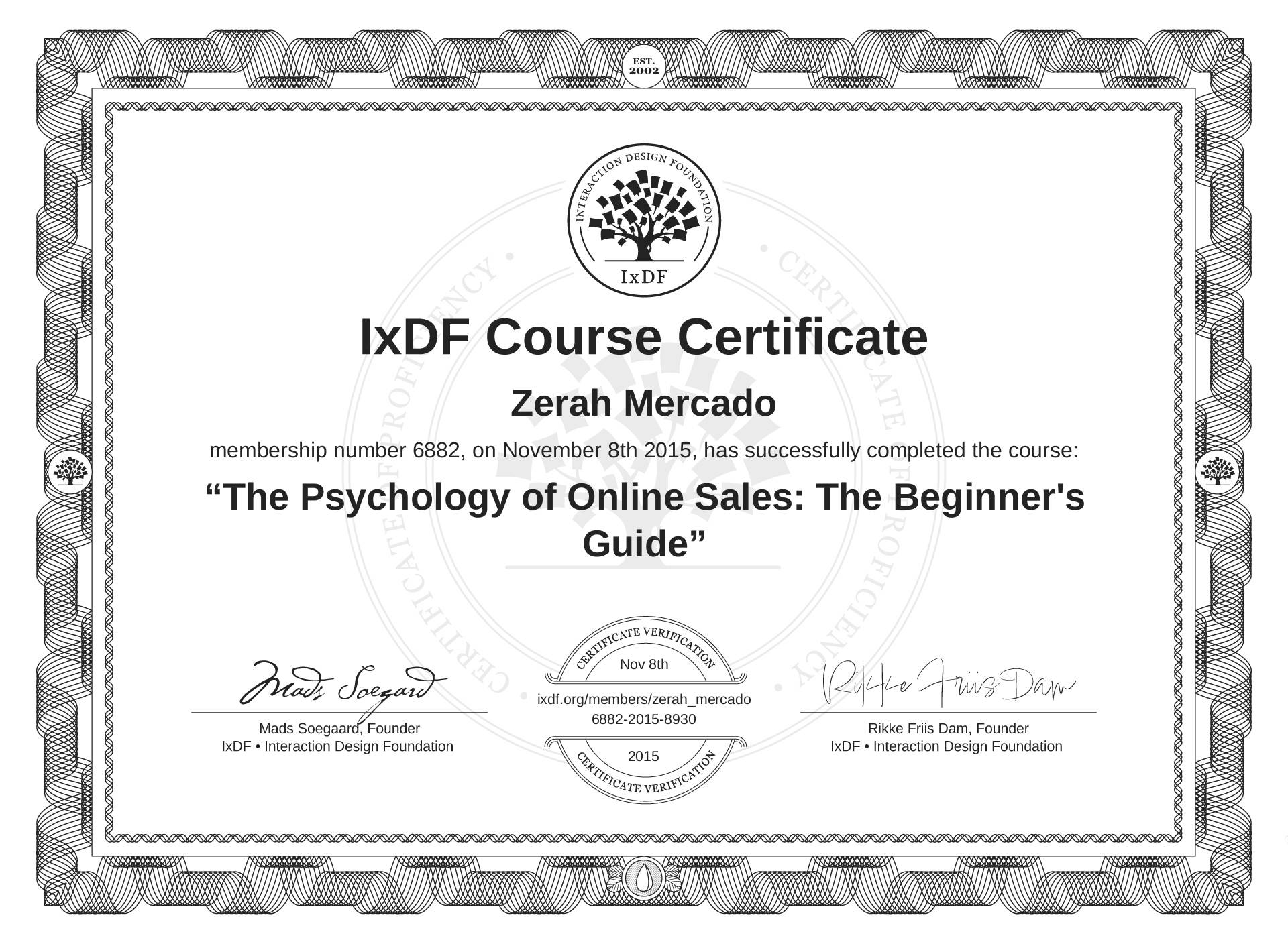 Zerah Mercado's IxDF Course Certificate: The Psychology of Online Sales: The Beginner's Guide