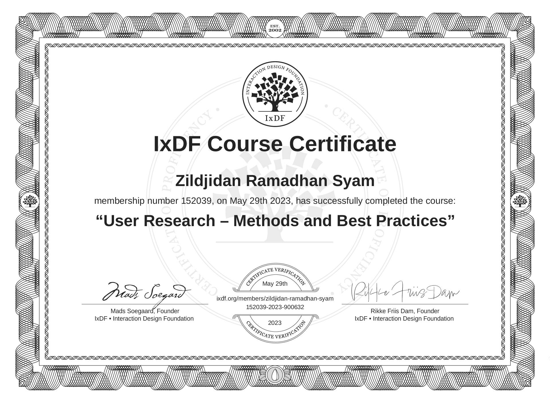 Zildjidan Ramadhan Syam's IxDF Course Certificate: User Research – Methods and Best Practices